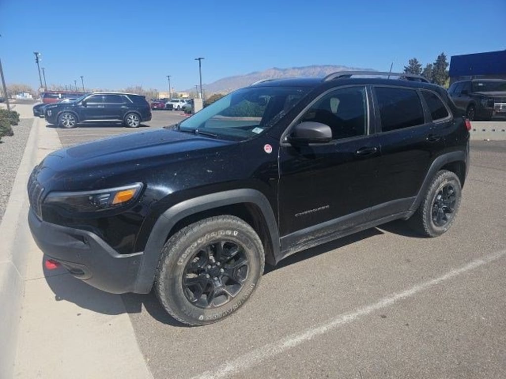 Recent Arrival! Diamond Black Crystal Pearlcoat This Cherokee Trailhawk is nicely equipped with Quick Order Package 27L Trailhawk Elite (Auto-Dimming Rear-View Mirror, Exterior Mirrors w/Memory, Hands-Free Power Liftgate, Heated Front Seats, Heated Steering Wheel, Power Driver/Passenger 4-Way Lumbar Adjust, Power Front Driver/Passenger Seats, Premium Alpine Speaker System, Premium Leather Trimmed Bucket Seats, Radio/Driver Seat/Exterior Mirrors Memory, Remote Start System, Security Alarm, Tonneau Cover, Universal Garage Door Opener, Ventilated Front Seats, and Windshield Wiper De-Icer), Technology Group (Adaptive Cruise Control w/Stop & Go, Advanced Brake Assist, Auto High Beam Headlamp Control, Exterior Mirrors Courtesy Lamps, Exterior Mirrors w/Supplemental Signals, Full Speed Forward Collision Warning Plus, Lane Departure Warning Plus, Parallel/Perpendicular Park/Unpark Assist w/Stop, Rain Sensitive Windshield Wipers, and Side Distance Warning), Trailer Tow Group (7 & 4 Pin Wiring Harness, Auxiliary Transmission Oil Cooler, Class III Receiver Hitch, and Trailer Tow Wiring Harness), 1-Year SiriusXM Guardian Trial, 3.517 Axle Ratio, 4-Wheel Disc Brakes, 4G LTE Wi-Fi Hot Spot, 5-Year SiriusXM Traffic Service, 5-Year SiriusXM Travel Link Service, 6 Speakers, 8.4 Touchscreen Display, ABS brakes, Air Conditioning, Alloy wheels, AM/FM radio: SiriusXM, Anti-whiplash front head restraints, Apple CarPlay, Apple CarPlay/Android Auto, Automatic temperature control, AutoStick Automatic Transmission, Brake assist, Cloth/Premium Vinyl Bucket Seats, Compass, Delay-off headlights, Driver door bin, Driver vanity mirror, Dual Bright Exhaust Tips, Dual front impact airbags, Dual front side impact airbags, Electronic Stability Control, Engine Oil Cooler, For Details Visit DriveUconnect.com, Four wheel independent suspension, Front anti-roll bar, Front Bucket Seats, Front Center Armrest, Front dual zone A/C, Front fog lights, Front reading lights, Fully automatic headlights, Google Android Auto, GPS Antenna Input, GPS Navigation, HD Radio, Heated door mirrors, Hill Descent Control, Illuminated entry, Integrated Voice Command w/Bluetooth, Knee airbag, Leather Shift Knob, Low tire pressure warning, Occupant sensing airbag, Off Road Suspension, Outside temperature display, Overhead airbag, Overhead console, Panic alarm, ParkView Rear Back-Up Camera, Passenger door bin, Passenger vanity mirror, Power door mirrors, Power driver seat, Power steering, Power windows, Radio data system, Radio: Uconnect 4 w/8.4 Display, Radio: Uconnect 4C Nav w/8.4 Display, Rear anti-roll bar, Rear reading lights, Rear seat center armrest, Rear side impact airbag, Rear window defroster, Rear window wiper, Remote keyless entry, Roof rack: rails only, SiriusXM Satellite Radio, SiriusXM Traffic Plus, SiriusXM Travel Link, Speed control, Speed-sensing steering, Split folding rear seat, Spoiler, Steering wheel mounted audio controls, Stop-Start Multiple VSM System, Tachometer, Telescoping steering wheel, Tilt steering wheel, Traction control, Trip computer, Turn signal indicator mirrors, USB Host Flip, Variably intermittent wipers, Voltmeter, Wheels: 17 x 7.5 Black Painted Aluminum, and Wheels: 17 x 7.5 Painted/Polished AluminuM.